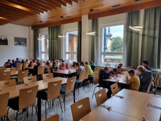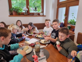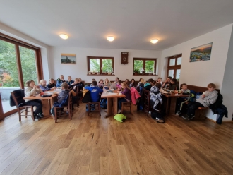 V pátečních odpoledních hodinách dorazil ke škole zpět autobus s plaveckou výpravou. Během týdne děti absolvovaly 20 hodin v bazénu, kromě toho si prošly okolí Srní, stavěly v lese domečky, napsaly pohledy domů, daly si zaslouženou odměnu v místní cukrárně a sportovaly v místní hale. Všechny děti udělaly velký pokrok nejen v plavání, ale také v budování vztahů a komunikaci mezi sebou nebo v dovednosti postarat se sám o sebe, bez rodičů. Bylo to zkrátka intenzivní po všech stránkách a jsme na děti pyšné, že to nakonec všechny celé zvládly až do konce.