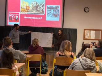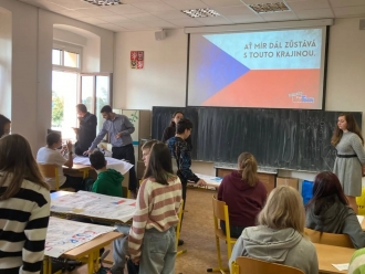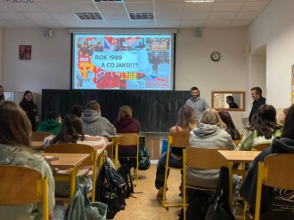 V úterý 21. října navštívili naši školu studenti Katedry společenských věd Jihočeské univerzity, kteří pod vedením PhDr. Vladimíra Hanáčka, Ph.D. žákům zábavnou a kreativní formou přiblížili události roku 1989.