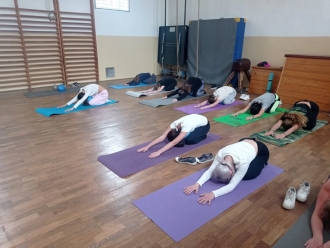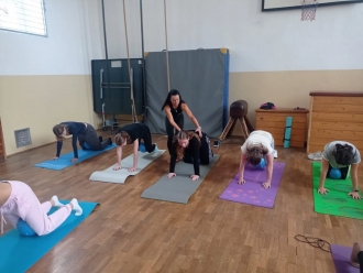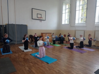 Ve čtvrtek 23. 10. k nám zavítala paní Mgr. Eliška Flašková, lektorka pilates, která si v rámci Tělesné výchovy připravila hodinovou lekci pro naše žákyně 8. a 9. třídy. Skoro všechny dívky se s tímto druhem cvičení setkaly poprvé. Společně si vyzkoušely základní cviky na posílení těla, rovnováhu i správné dýchání. Děkujeme za inspirativní lekci a těšíme se na další setkání