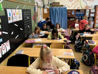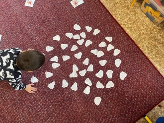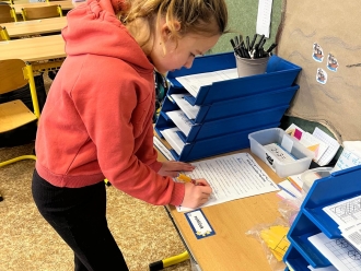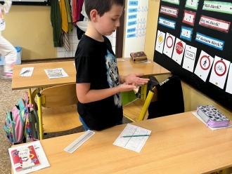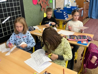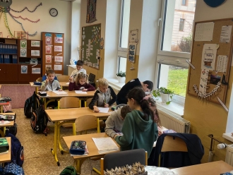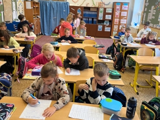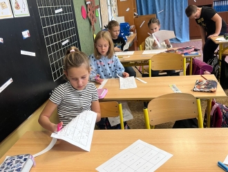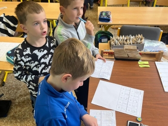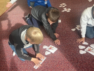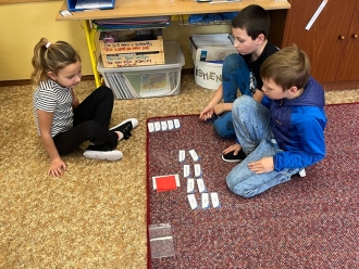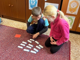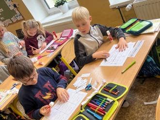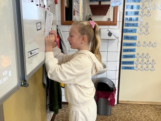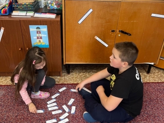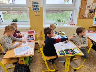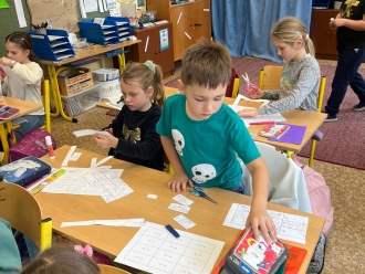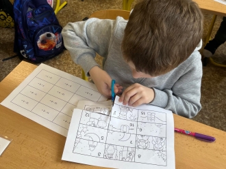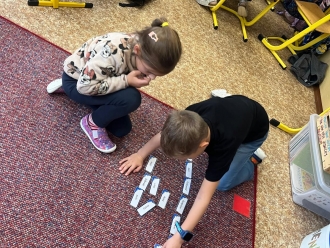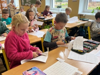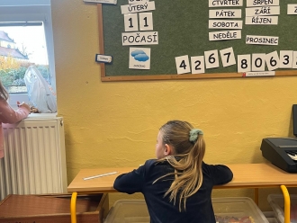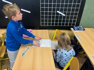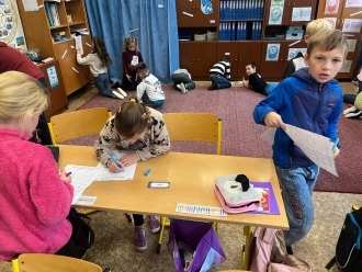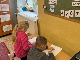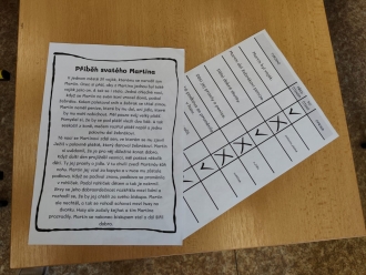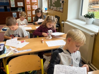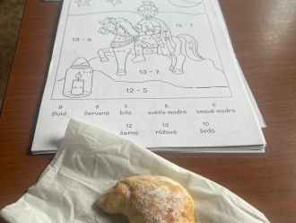 Dnes jsme prožili celý den se sv. Martinem. Děti se seznámily s jeho příběhem. Doplňovaly do textu chybějící slova, která nacházely po třídě. Řadily slova podle abecedy. Zahrály si Loto hru, přiřazovaly husy k Martinovi a doplňovaly výsledky při běhacím počítání. Na závěr nemohl chybět ani svatomartinský rohlíček. Děkujeme Martine, že Tě máme ve třídě.
