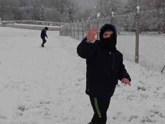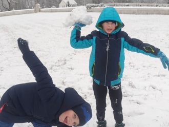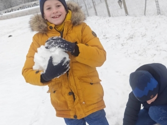 Listopadový sníh děti využily k hodině tělocviku na čerstvém vzduchu... běh, hod do dálky i na přesnost, strategie i respektování pravidel..to vše si s radostí procvičily....