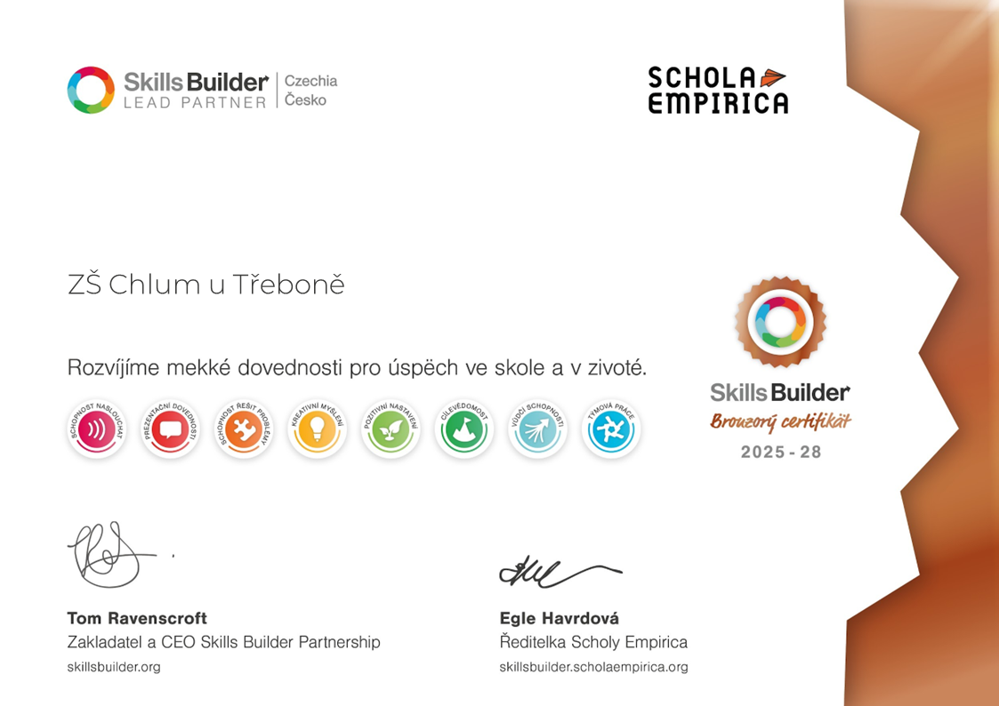 A právě za tuto práci jsme získali bronzovou medaili – a to jako jediní v Jižních Čechách a stali jsme se součástí mezinárodní komunity školy, které se zabývají Soft Skills! Je to pro nás velká událost a zároveň důkaz, že rozvoj těchto dovedností má smysl.