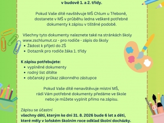 K zápisu jdou děti, které do 31.8. 2026 dovrší šest let, tedy jejich datum narození je do 31.8. 2020 a děti, kterým byl udělen v loňském roce odklad školní docházky.